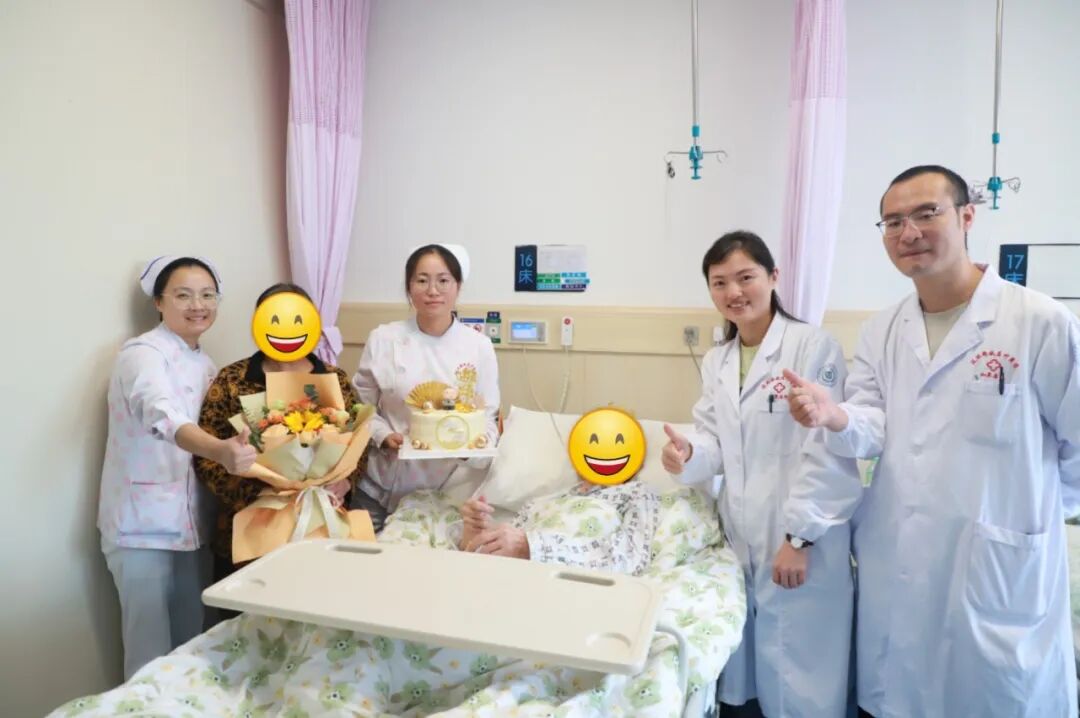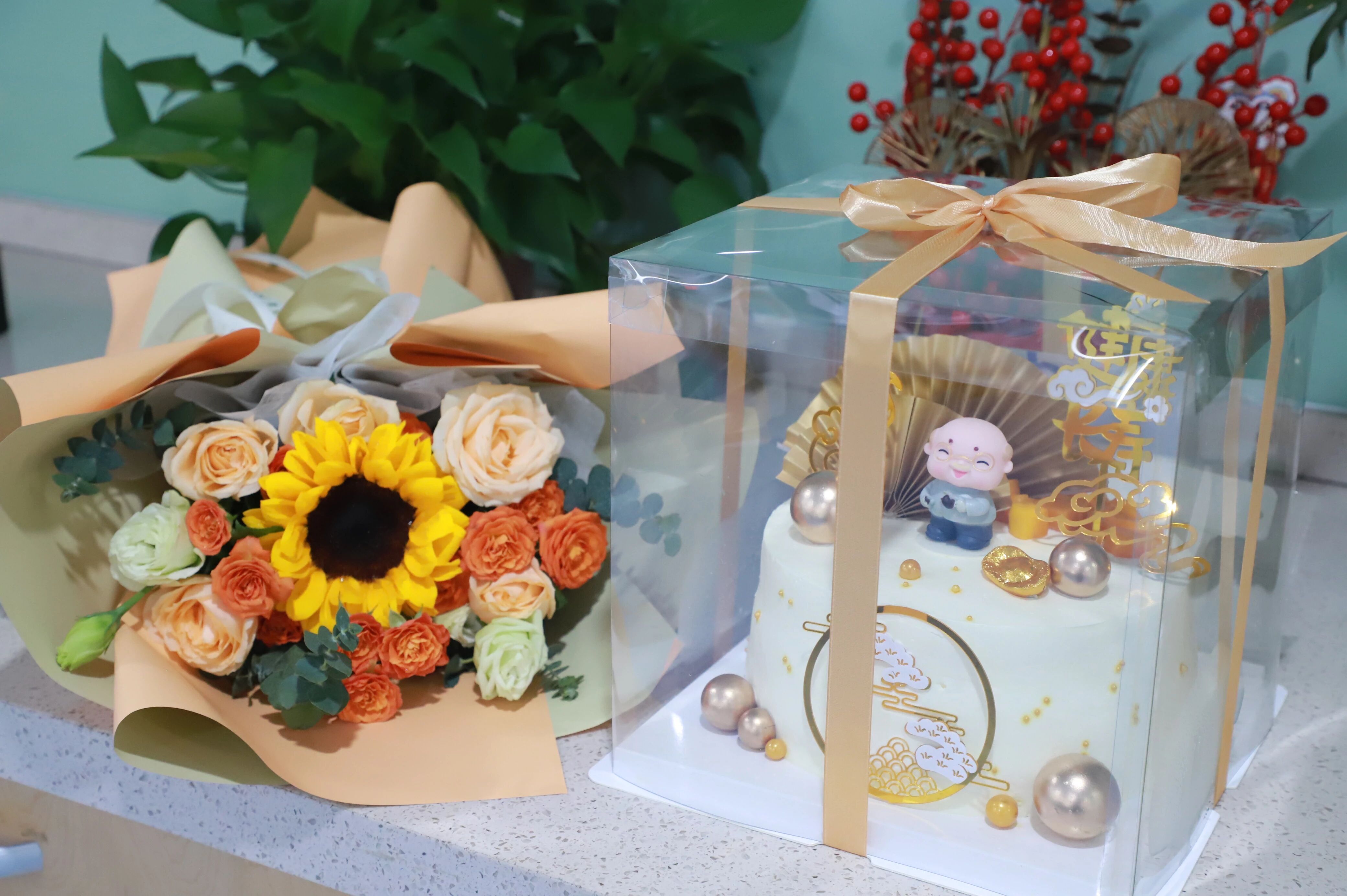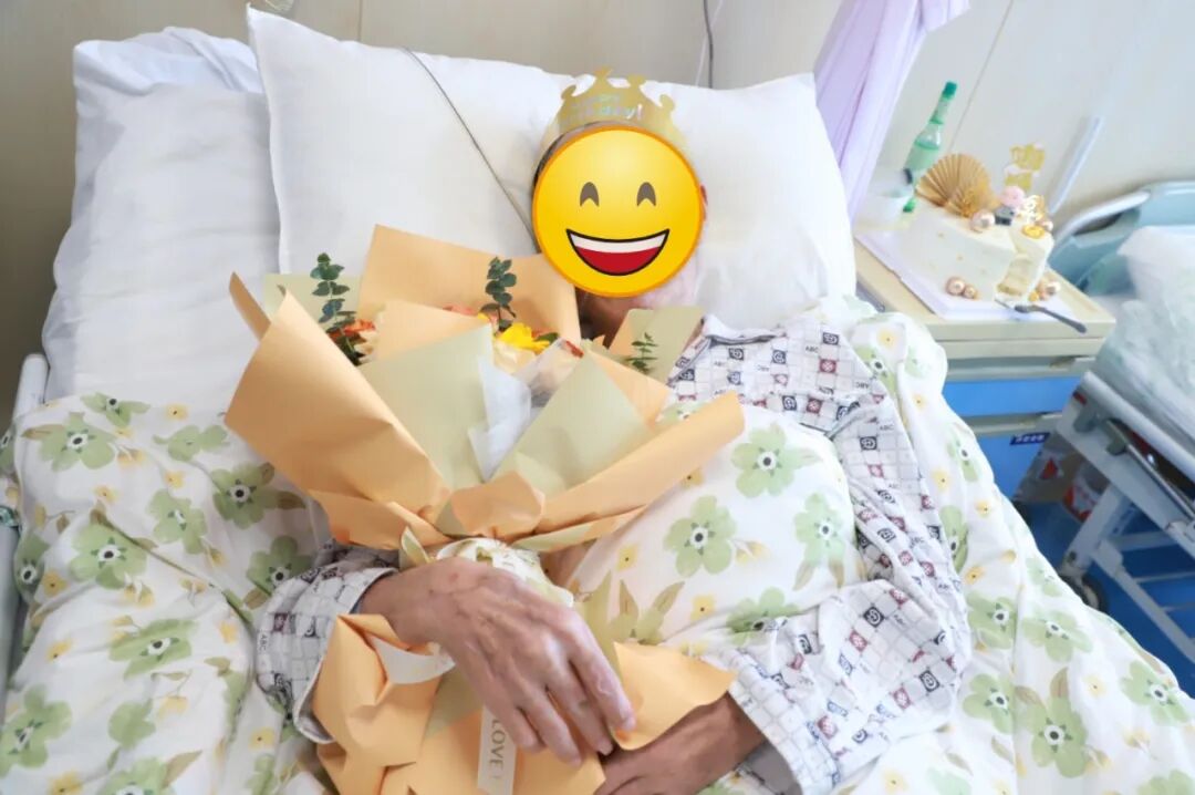 在他这次住院期间,恰逢他的生日。内分泌肾内科的医护人员悄悄准备了鲜花和蛋糕,在病房里为他举办了一个简单而温馨的生日会。